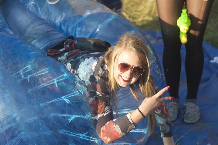 Kruip in deze grote opblaasballen en beuk de tegenstander uit de ring. Een klein tikje is genoeg om de ander meters verder te lanceren.